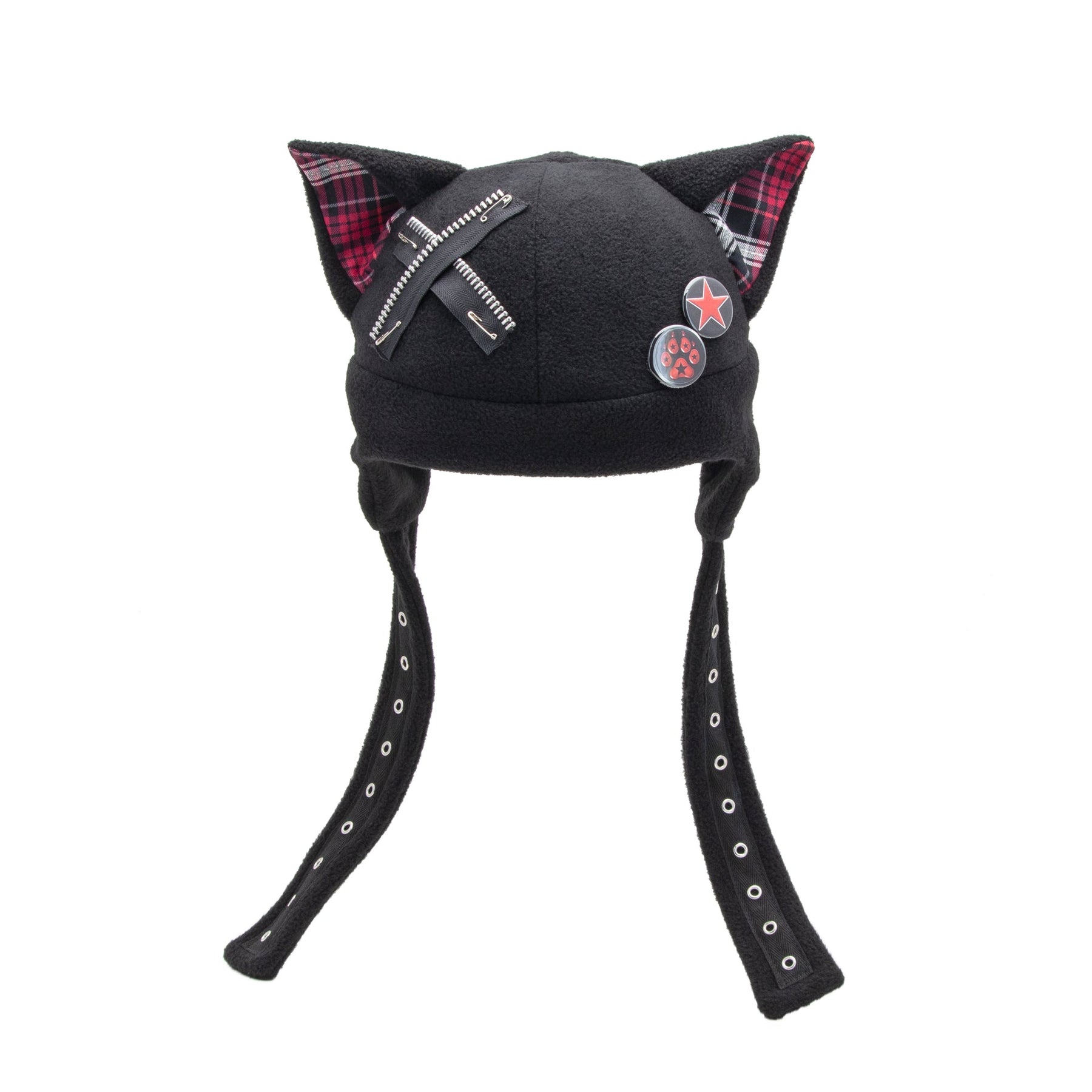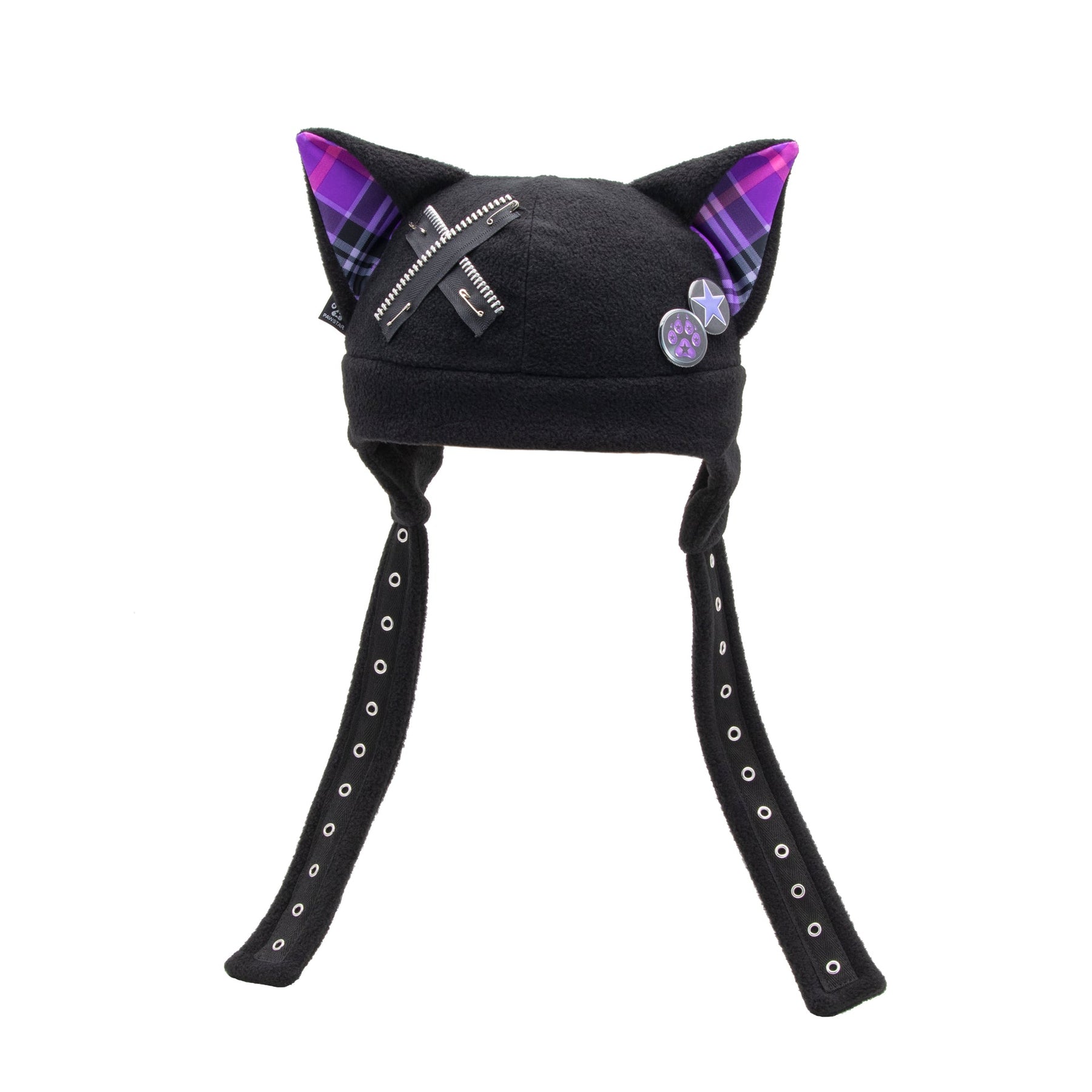 This edgy-meets-adorable Pin Punx Kitty Hat - Extra Warm is taking style notes from Harajuku and visual Kei. It comes decked out with zippers, safety pins and two Pawstar Buttons—which we make sure to match the inside ear color!