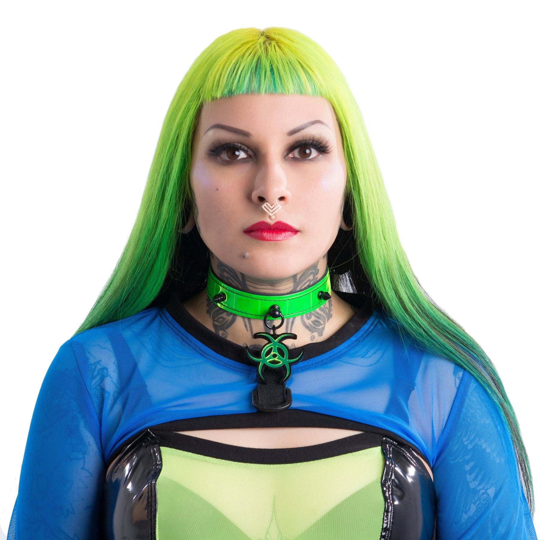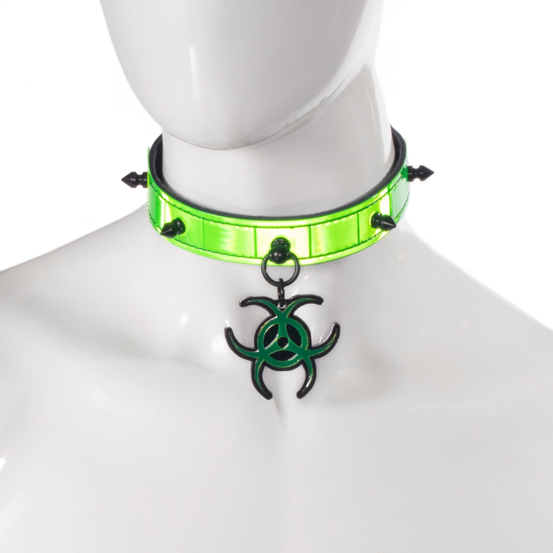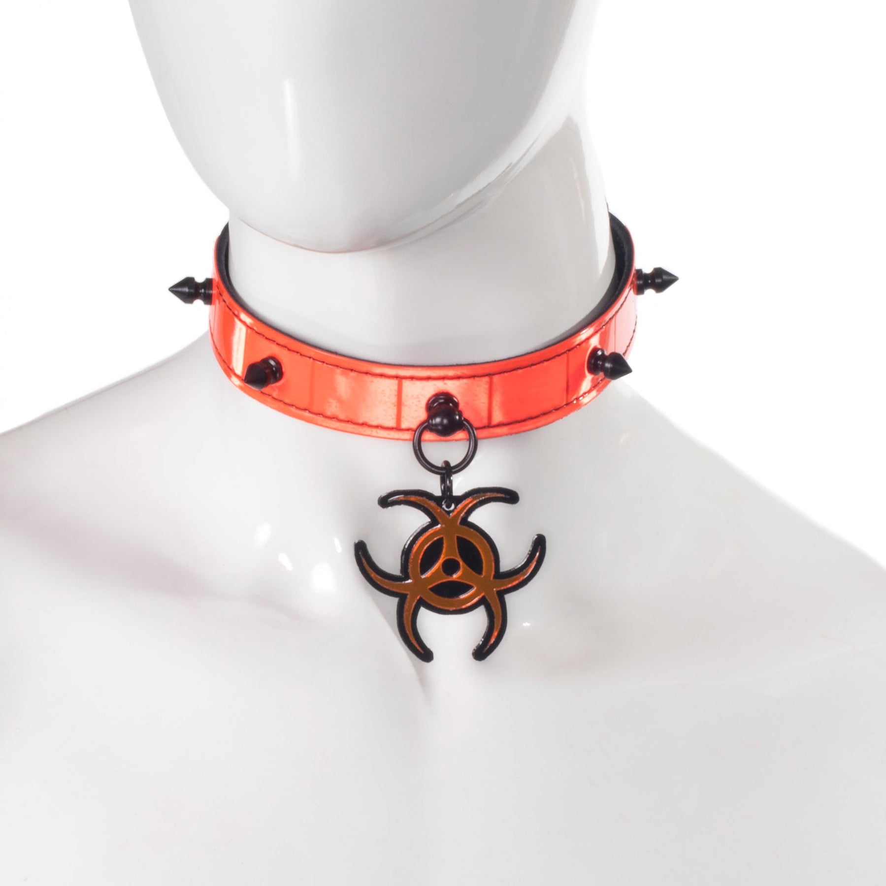 A DSF original, these hyper reflective collars come with a thick laser cur acrylic charm. Yellow, green and orange have UV reactive charms, all other charms are reflective mirror. The collar itself is made from our top grain leather, soft comfy and durable. The reflective tape has been sewn on for durability and flashes light back at any light source. Finished off with matte black metal hardware.